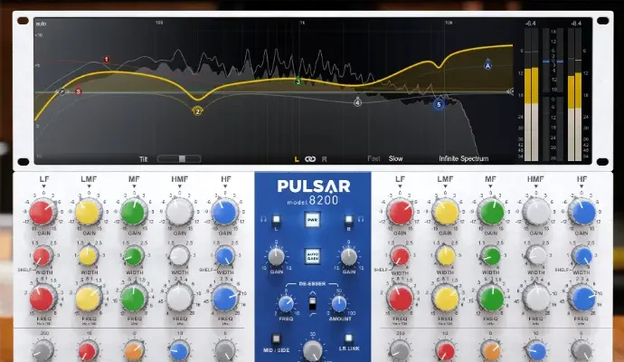 Just like the original machine, Pulsar 8200 gives you a tight and solid low end, a crystalline high end, and surgical control over the frequency spectrum. He perfectly replicates the all-discrete, Class-A analog electronics that made the original machine famous in the 80s, and still used today.