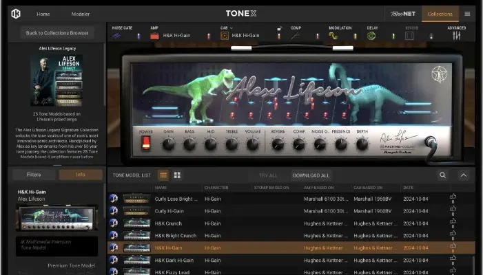 Instantly play up to 1,100+ Premium Tone Models already available plus browse, demo and download over 33K Tone Models available on ToneNET in TONEX. Easily add more Premium tones to your library with Tone Partner and signature collections.