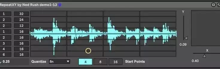 Hello. I have added custom timing ratios on the Y axis, so if you want to repeat 3/17ths of a bar then you can. It makes the UI a bit ugly but it’ll do for now. I had to move some things around to make space. Also the retriggering on each new xy position may mess up timing ratios that aren’t 4 so ignore that. Just give it a spin.