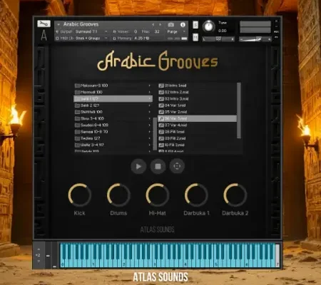 Bring the pulse of the Middle East into your productions with Arabic Grooves, a dynamic drum library built for Kontakt 7. This collection combines a modern drum kit with a drag-and-drop MIDI groove library, giving you instant access to authentic rhythms and endless creative possibilities.