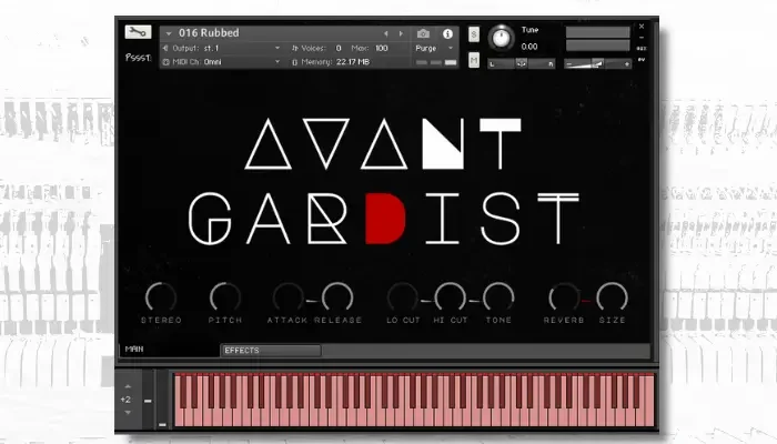 Why does it sound so unique? Imagine a group of pianists. Each of them plays only on one upright piano string with their fingers, horsehairs, chains, ebows, sticks, patafix, magnets, etc. And what’s the most important: they play tonally. Even more: each string has it’s own close stereo microphones (instead of standard mics positioned farther to record a whole piano) which means that every note sounds extremely close, centered, “in your face”. And finally: patches use creative sampling techniques (which keep samples acoustic and almost unprocessed) and creative tuning (it’s slightly out of tune but in a very natural and variable way, which is unusual for pianos! It reminds strings hand-andjusted tuning on strings). This is how Avant-Gardist sounds.