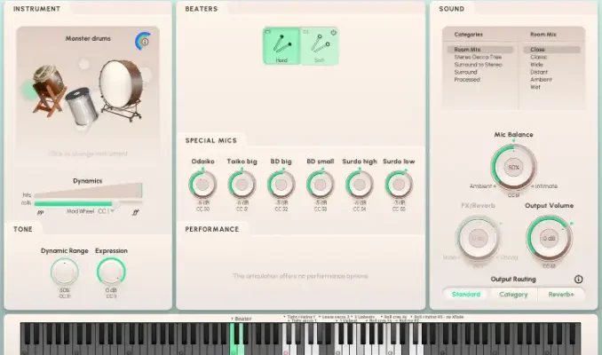 The Percussion Ensembles feature a stunning variety of setups divided into two main groups – Skins and Metals. The Skins category includes Monster Drums, Bass Drums, Thunder Toms, Special Drums, and a Snare Drum Ensemble. The Metals category offers Suspended Cymbals, Super Crashes, Big Metal, and Small Metal. By combining instruments from both categories, you can span the entire frequency spectrum and harness the exhilarating energy of up to twelve instruments sounding together.