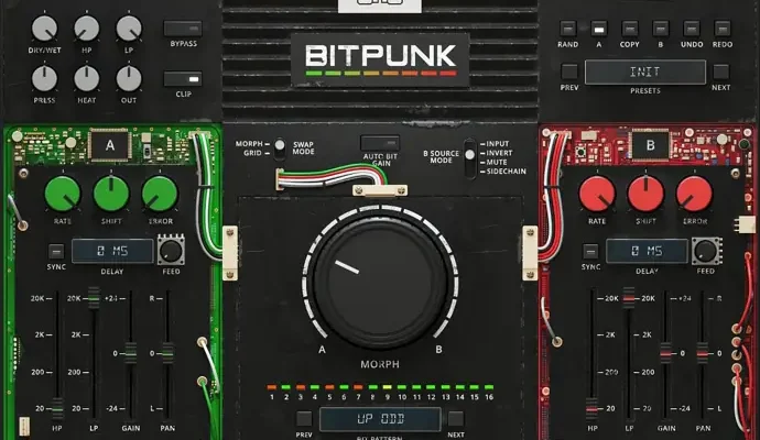 Experience the raw energy of digital degradation with Bitpunk, the ultimate audio plugin for bit manipulation. Unleash its immense power to transform your sound through a wide range of bit-altering techniques, including swapping, crushing, inverting, and morphing. With an array of cutting-edge bit-mangling effects, as well as master compression, saturation, and hard clipping, Bitpunk stands as the pinnacle of bit plugins, pushing the boundaries of sonic exploration like never before.