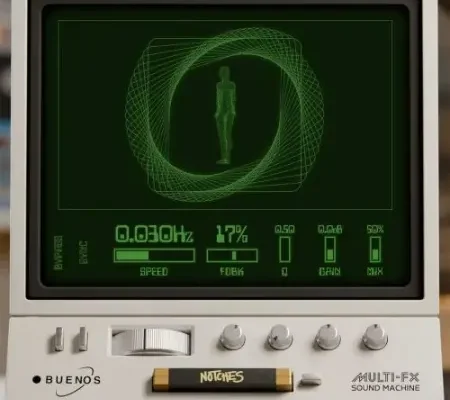 Buenos is an early-digital inspired multi-FX plugin with characterful textures from different “effect cards” like Notches, Canyon Reverb, Death Flange, Singularity, micro pitch shift and more.