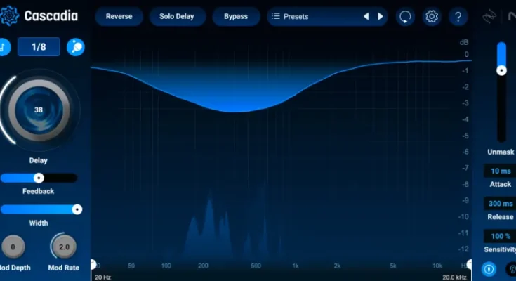 Sculpt your space with beat-synced or time-based delays, ping-pong and reverse delay modes, vintage pitch drift, width control, and an adjustable unmasking section. Wave goodbye to long plugin chains and tedious routing. Find your flow fast with Cascadia’s intuitive controls.