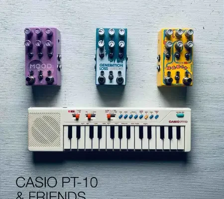 This sample library contains both that dry signal and a room mic recording of each of the PT-10 four sounds. Each voices also includes two alternate versions: sounds that were created with a variety of outboard pedals, as well as a reel-to-reel tape recorder.