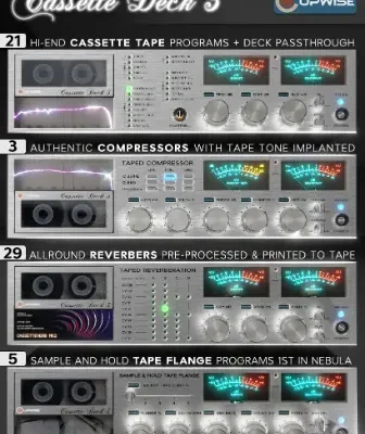 There are three compressors also included. I made these by hybridizing tape samples with three of my released Nebula compressors. You may be familiar with my previous Casspressors release, which also did that, but this time is different. In that release only the attack/release behavior was taken from the comps, but here the dynamic response/compression curve is also taken from the compressors. The end result is three full-fledged compressors which work and behave almost exactly like the versions from their respective releases, but the tone and harmonics come from the tapes/tape decks.