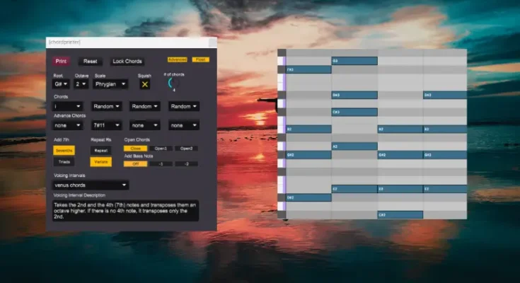 2. Edit the setup of Chordprinter to create the desired chord progression.