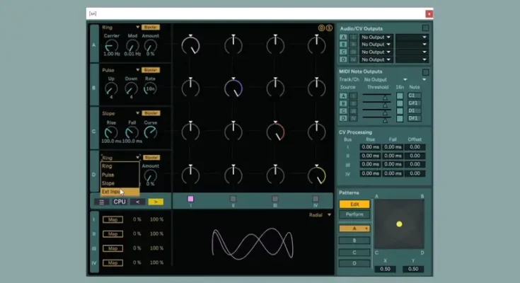 Dispatch’s modular workflow lets you route signals in and out of the modulation matrix: you can send and recieve CV signals between your Eurorack hardware from inside the device, consolidating all of your modulation between hardware and software. Additionally, Dispatch can derive MIDI notes from its control signals, allowing possibilities for generative composition with internal and external MIDI devices.