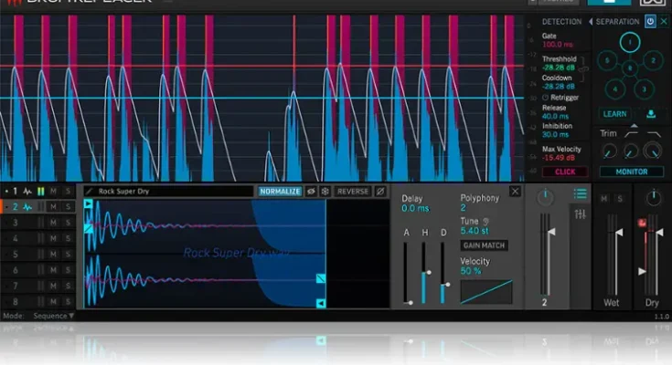 With Drum Replacer you can easily remove bleed from drum recordings, replace drums in a mix with your favorite samples or VSTi, add sub-bass, layer existing drum sounds, and more.