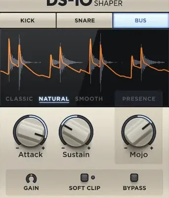 Get custom treatment for your tracks and mixes. DS-10 Drum Shaper has three modes (Kick, Snare, and Bus) individually tuned and optimized to give you the best sound for the source you want to enhance.