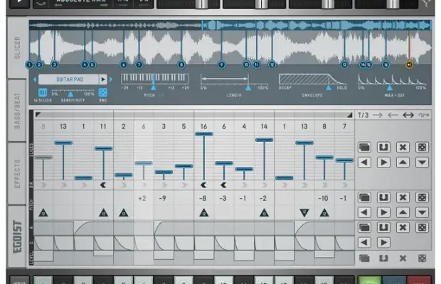 The factory library packs 760MB sonic material, from acoustic beats, piano- & percussion loops, synths, vocals to FX, so you can go for hours before using external audio. Via „Load Sample“, you can import the formats .wav, .aiff and mp3.