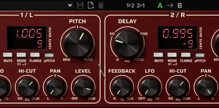 Two independent pitch shifting modules enable rich stereo effects and complex harmonies, perfect for creating wide soundscapes and unique textures.