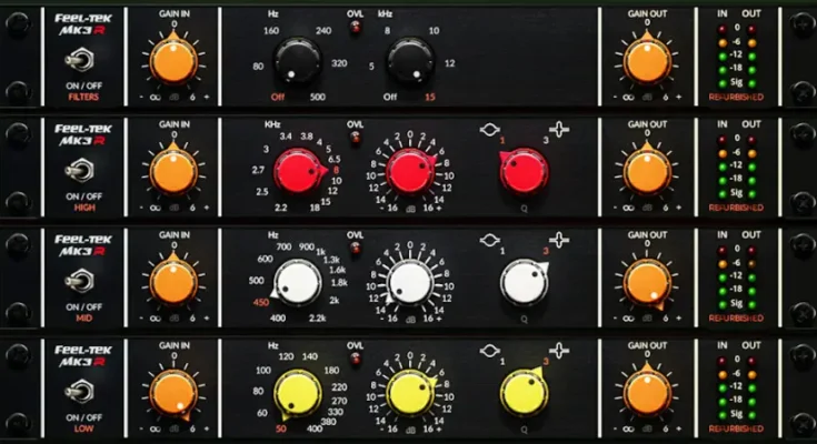 Originally designed in the 1970´s the MK3 was first built and distributed only by the Swiss based company. Later the design was copied and licensed as an eq design for Danner Cassettes. All circuitry for the MK3 is high quality and built according to the standards of the IRT (Institute für Rundfunktechnik). MK3 follows a long tradition of fine vintage broadcast modules. In the beginning these modules were built for radio stations exclusively due to their high factory price. Years later they found their way into recording studios around the world as used and now affordable gear. The MK3 equalizers are fully transformer-balanced.
