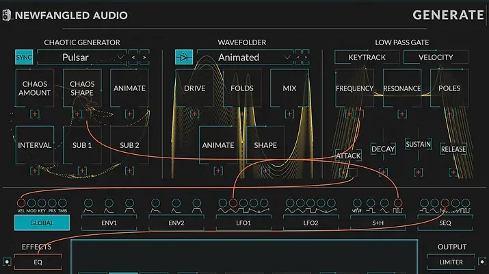 Take Chaos to the next level with Generate. Developed by Newfangled Audio, Generate is a marquee polysynth combining five revolutionary chaotic oscillators with all the features you’d expect in a first-class synthesizer. Create beautifully complex pads, warm moving keys, jittery sequenced basses, out-of-control leads, and ‘oh my God’ textures.