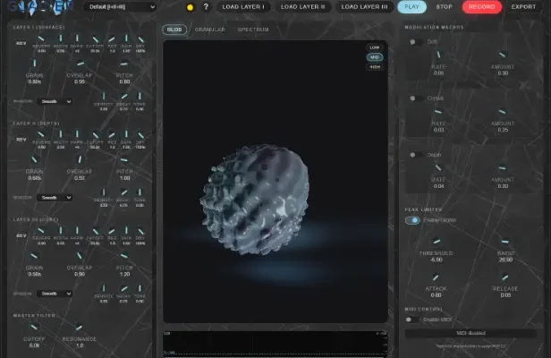 Glacier is a granular synthesizer for creating ambient pads, drones, and evolving soundscapes. It transforms audio into continuous textures using a three-layer granular engine. This is a standalone software, not a DAW VST plugin. That means that you can record/export audio files and then drop into your DAW, rather than use it as an actual plug-in.