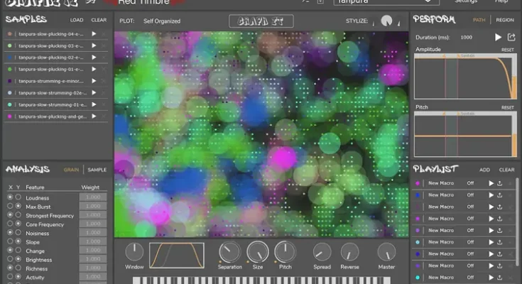 This innovative tool uses analysis and AI to organize sample audio into clusters of grains, creating a sonic space that you can explore intuitively by drawing paths to produce unique mashups of your sound library. Simply drag and drop your samples, select your analysis features, and let Graphiti paint you a picture. Crafted for musicians, sound designers, game developers, and foley artists, Graphiti embodies our commitment to creative audio software offering new ways to create and explore audio. With Graphiti, we invite you to GraphIt! and redefine the potential of your sound library.