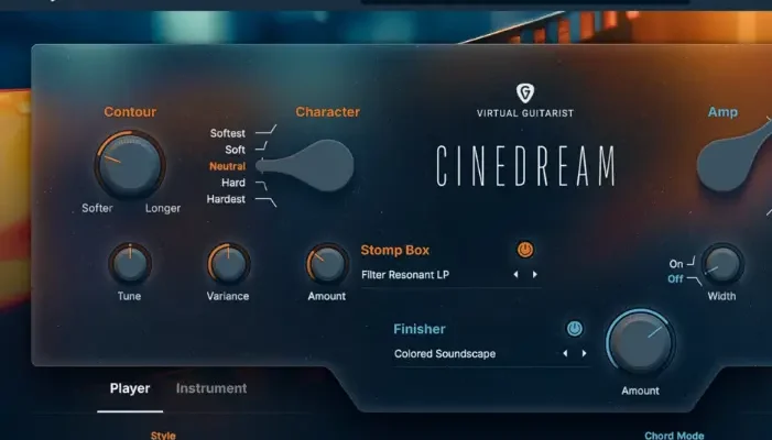 Virtual Guitarist CINEDREAM makes it dead easy to create ambient guitar textures for any musical situation. A perfect tool for building moody backdrops, evolving pads, and emotional underscore. Based on real guitar, shaped by sound design.