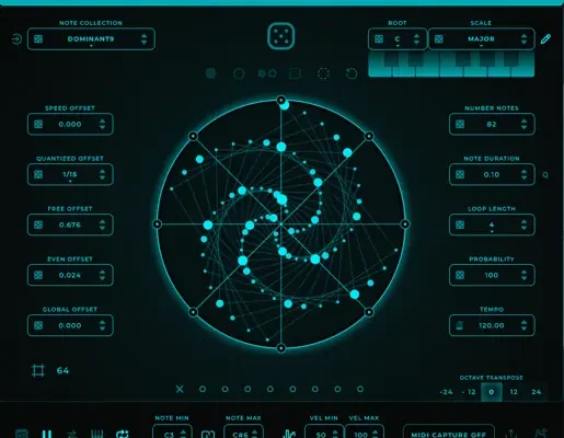 Harmony Bloom is a MIDI generator merging polyrhythmic patterns with beautiful visuals.