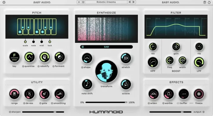 Produce vocals from the futureCreate stunningly robotic vocals from any singing performance. Humanoid is an over-the-top pitch corrector designed for instant hard-tuning and radical voice manipulation. With a brand new approach to vocal tuning and phase-vocoding, the plugin transforms singers of any style and ability into their best synthetic selves.