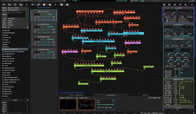 With over 40 released updates since it’s launch Hyperion has evolved and continues to improve it’s sonic capabilities, features and graphical interface with many updates adding visual feedback and improvements to workflow making it one of the most capable yet approachable modular synths with a massive existing sound library.