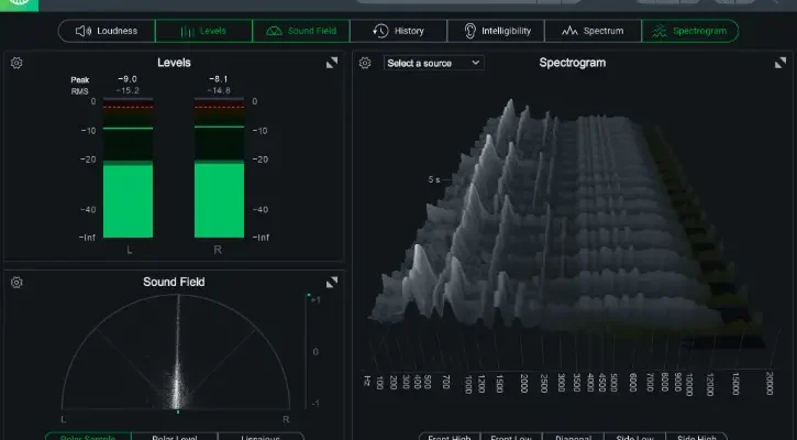 Use the detailed and responsive Spectrogram to monitor the complete spectral content of your mix.