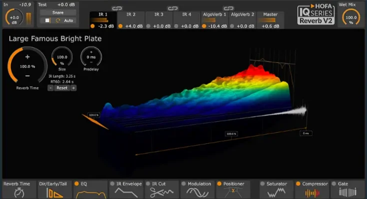 With EQ, compressor, modulation, saturation, gate, IR envelope and positioner