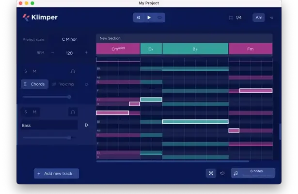 Klimper’s piano roll shows the harmonic layers of your track so you can immediately write exciting basslines and countermelodies as well as lead melodies – without ever getting lost in 12-tone nirvana.