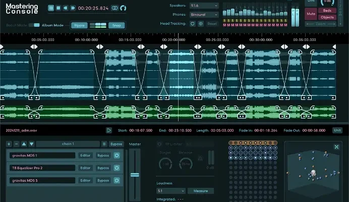 Do you want to master your ADM/BWF files, just like you know it from mastering stereo mixes for decades? The Mastering Console is the one stop Dolby Atmos mastering solution with OBAM plug-in hosting for conveniently processing your entire Dolby Atmos mixes to give them the final shine. Create albums with crossfades, sophisticated loudness measurements and the fastest workflow on the market.