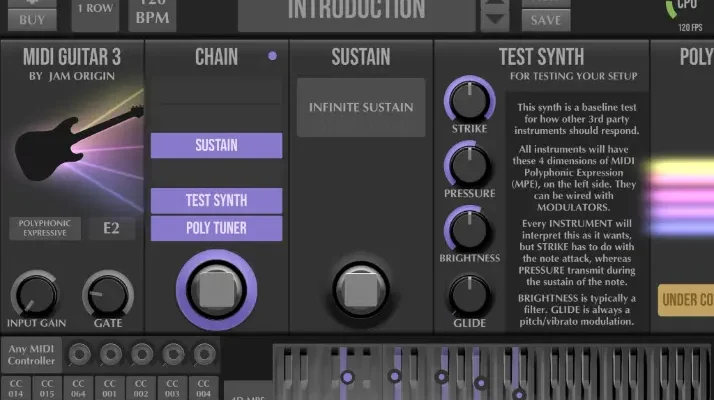 Unlike most guitar synthesis devices, MIDI Guitar 3 simply requires the audio signal from your instrument’s 1/4″ jack (via a standard USB audio interface) to generate MIDI output. And, yes, MG3 can generate MPE or standard MIDI.
