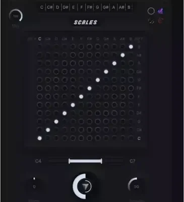 •The very top row with the black background sets the ROOT NOTE, which offsets the matrix to start from the selected note.