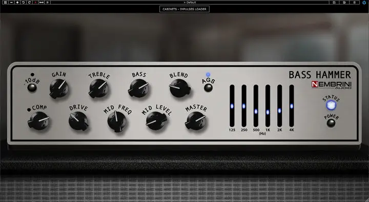 The Nembrini Bass Hammer plugin, modeled on the Aguilar Tone Hammer*, is engineered for advanced bass tone shaping, featuring Adaptive Gain Sculpting, comprehensive EQ adjustments, and versatile cabinet simulations.