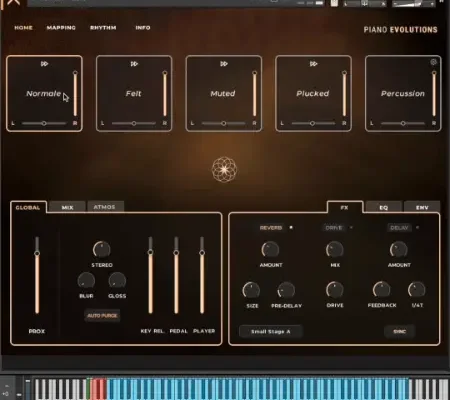 Shape your sound with a versatile palette of articulations – Normale, Felt, Muted, Plucked, and Percussion – each offering its own character, texture, and creative personality. Each can be reversed to a custom amount.