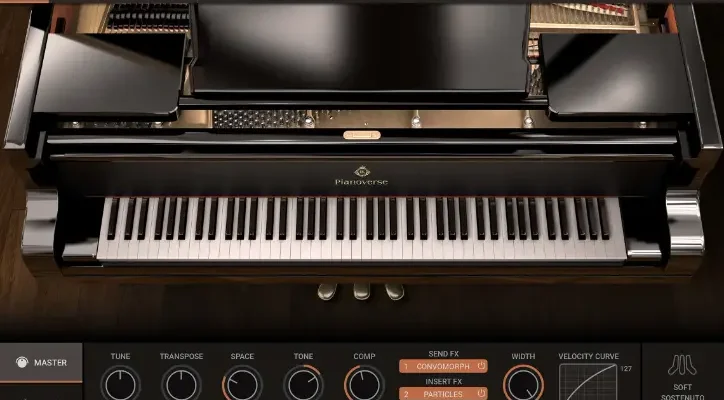 Pianoverse also shines with a unique combination of performance controls for both stage and studio work. To customize each piano’s sound, Pianoverse offers adjustable lid position, harp resonance, pedal noise or even the noise of the piano mallets, all things that are usually only available in modelled instruments.