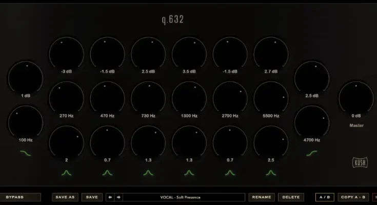 q.632 is the first Kush product to leverage Magpha’s EQ dsp, adding extended gain range, an updated Preset Manager and Apple Silicon compatibility. Magpha EQ’s core dsp (and tightly phased sound) remains untouched, and will slowly become incorporated into all of Kush’s products.