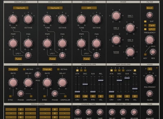 – Analog style Mono and Legato modes and up to 10 voices polyphony
