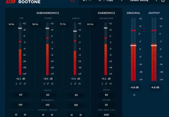 RootOne lets you add and shape 3 bands of subharmonic content for the perfect tonal balance. Whether you need to make one part of your mix meet the others, or if you need more low-end overall, you can take the second-guessing out of your workflow when bass matters most. This unique plugin completes your low-end with clean, phase-aligned subharmonics, and you’ll never have to worry about frequency interference or detachment.
