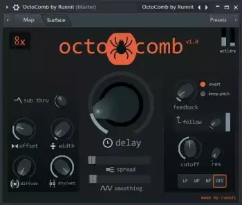 Octo Comb uses 16 fruity delay3’s to create compounding comb / resonator textures.