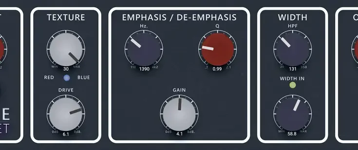 In addition to the drive function, a new Emphasis/De-Emphasis filter opens up a new world of harmonic formations and timbres. With auto-compensated Frequency, Gain, and Bandwidth, this may be the best way to introduce the classic emphasis-deemphasis technique.