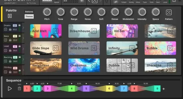 Unlike your DAW, which reads out static sequence data, everything Scapeshift generates is controlled by continuously adjustable parameters. It can do some cool things your DAW can’t. You can morph continually between two completely different patterns, cross-breed multiple patterns or create themes to generate infinite variations on a style.