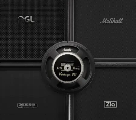 Loaded with 4 different cabs using a CELESTION VINTAGE 30 BLACK FRAME T4139 – 444 CONE aka V30 HOLY GRAIL.