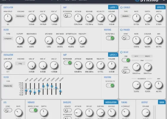 String is a virtual instrument that emulates the beautiful sound of the polyphonic string synthesizer.