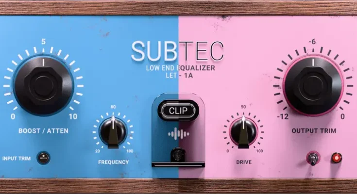 Subtec is a low-end equalizer designed around the classic boost-and-attenuate trick. It adds punch, focus, and weight to your bass frequencies without the mud.