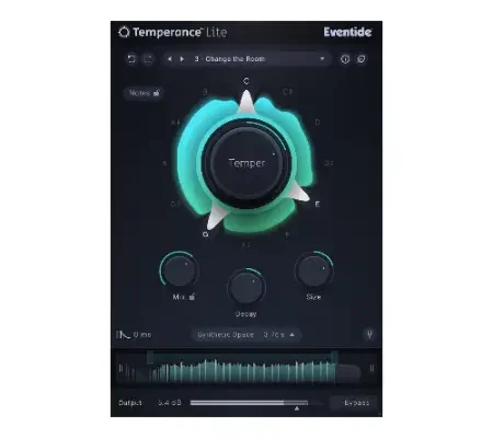 Temperance Lite represents the next step for reverb technology, offering a new approach to shape ambiance. It responds to the language of music, encouraging you to explore reverb in a new way. Unlike a traditional algorithmic or convolution reverb, Temperance Lite lets you control reverb resonances using the familiar 12-note chromatic scale. This allows you to choose which notes bloom or wither within your chosen space, creating musical ambiances that were previously unattainable