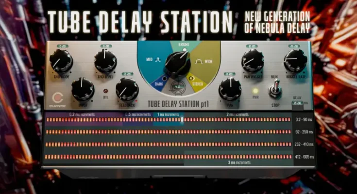 The delay itself can be set to any of 63 different sampled tones, each with different frequency response profiles. Many filter the lows and/or highs in various ways, but some are almost perfectly flat, so there’s a lot of variety. There are also 9 sampled distortions you can combine with the main tones, for some subtle thickening, noticeable grit, or complete destruction.