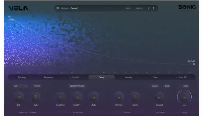 The ducking system in vela lets you fine tune how your reverb interacts with the incoming signal… Perfect for Vocals where you want your vocal to come through clearly but have the Vela reverb follow after.