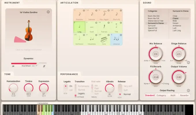 Warm, rounded, mellow – these muted string ensembles add another layer of expression and sonority to your small and large string sections with a beautiful velvety timbre that’s still bursting with variety. Con sordino (played with mute) adds a rich softness to the violin’s tone but it also brings a mysterious, almost ethereal quality to the music. With the mute placed on the bridge the sound takes on a veiled, filtered character. Gentle yet present, this tone is ideal for creating a subtle, intimate atmosphere. These strings might be played with a mute but definitely won’t elicit muted responses from your listeners.