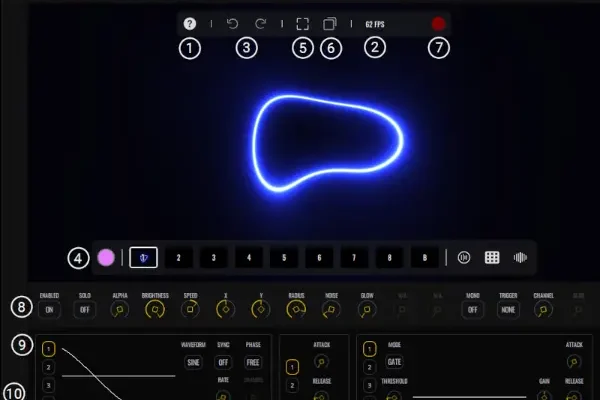 VS – Visual Synthesizer multi-layered shader system allows you to create complex compositions by blending dynamic graphical elements using powerful controls.