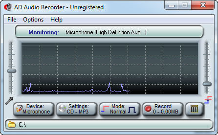 AD Audio Recorder is a sound record program for Windows. It can record in normal mode as the most known audio recorders and in sound activated mode. Intuitive user interface and sound visualization in real time make easy setting and adjusting of recording parameters.