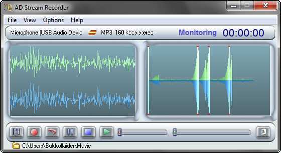 AD Stream Recorder is a sound record program for Windows. It can digitize, visualize and record any signal connected to your sound card as well as live streaming audio including the Internet radio played by the most popular media players into MP3 and WAV format.